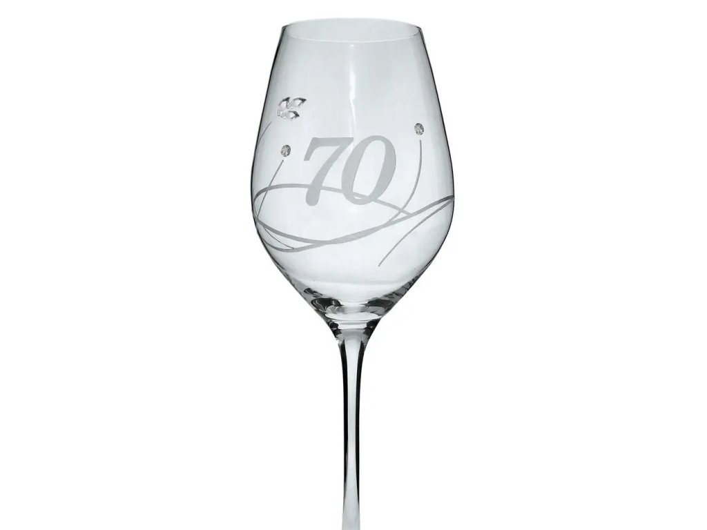 Elegantní sklenička na víno s číslem 70 broušená s krystaly Swarovski 360 ml (1ks)