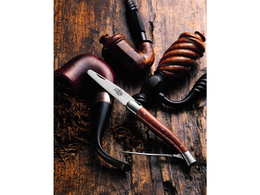 Nezbytné příslušenství pro milovníky dýmek, nůž na údržbu dýmek od Forge de Laguiole je kombinací tradičního know-how výroby nožů a dokonalé elegance. Práce s ním je velice jednoduchá a čistá. Jeho konstrukce zajišťuje dokonalost při práci s nožem a minimalizuje možnost poškození dýmky. Fajfka, lulka i čibuk mohou být ozdobou Vaší vášně, a také naše nože pro každodenní použití z kovárny Forge De Laguiole, zapadnou do sbírky vašich luxusních pomůcek na tabák. Čistič dýmek, důležitá pomůcka, která nemusí nutně plnit pouze svoji funkci, ale může člověka i potěšit a pohladit jeho vnímání.