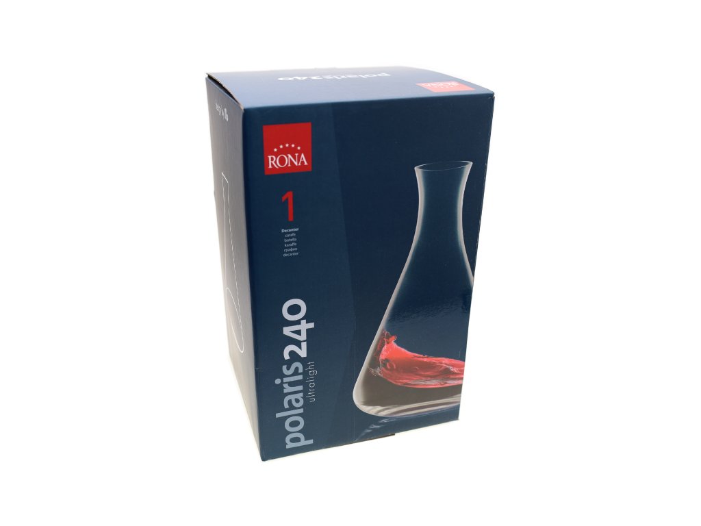 RONA karafa na víno POLARIS o obsahu 2,4 litru z produktové řady HOUSEHOLD je tenkostěnná dekantační karafa na víno, vyrobená z mušelínového skla, Vás osloví svým jemným provedením a velice precizním zpracováním a dodá Vašemu nápoji punc jedinečnosti a luxusu. Velice pěkný design dekantační karafy je garantem kvalitního moderního bytového doplňku, z křišťálového skla. Je vhodná pro odpočinutí a vydýchání vína a její úzké hrdlo pomáhá oddělit sediment vína. Fazetové zabroušení (příjemné na dotek), vyrobeno strojově technologií vytaženého dříku. Vhodná do myčky na nádobí. Dekanter na víno je opravdu nezbytný doplněk pro všechny milovníky vín. Pro její tvar a objem je velice oblíbená i jako karafa na vodu. Perfektně doplňuje skleničky na víno a skleničky na vodu z produktové linie POLARIS.