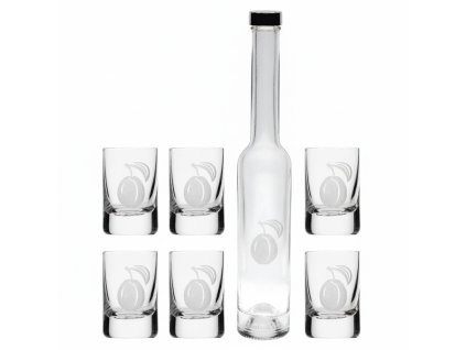 Zažijte tradici s elegancí křišťálu. Ručně vyrobený Set PLUM(Švestka) obsahuje láhev o objemu 200 ml a šest skleniček na pálenku o objemu 30 ml, každou s motivem švestky....